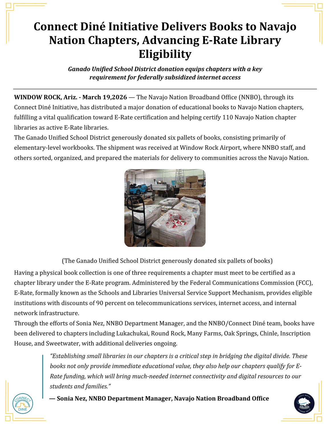 Connect Diné Initiative Delivers Books to Navajo Nation Chapters, Advancing E-Rate Library Eligibility