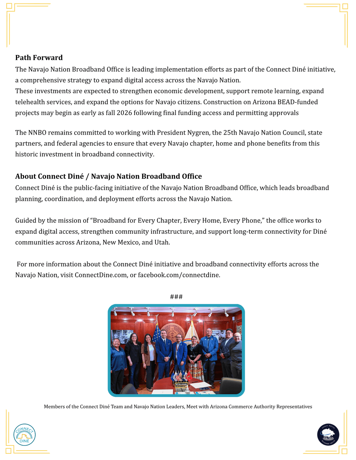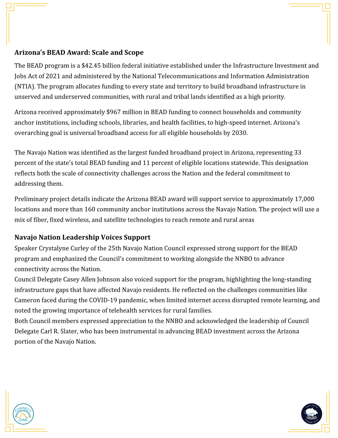 Connect Diné initiative positions Navajo Nation as Arizona's largest BEAD recipient, representing 33 percent of statewide broadband funding